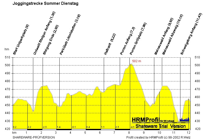 | Ziel Uniparkplatz (12,12) | 12.12 km | 453 m |